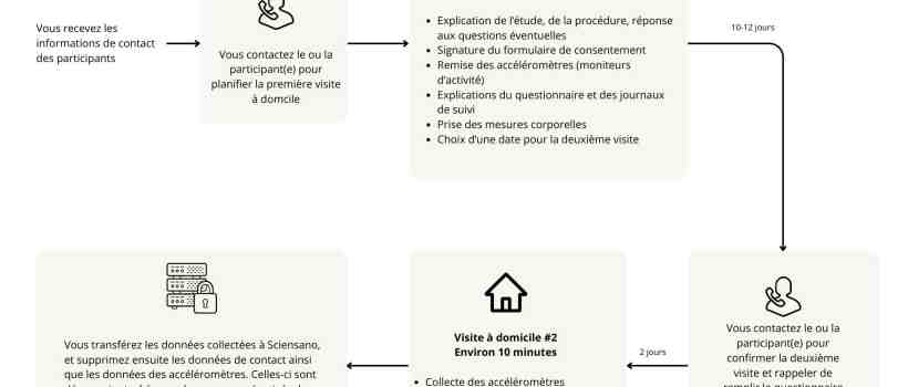 - un montant de 80€ pour la collecte de données par participant (à réception des données de chaque participant).